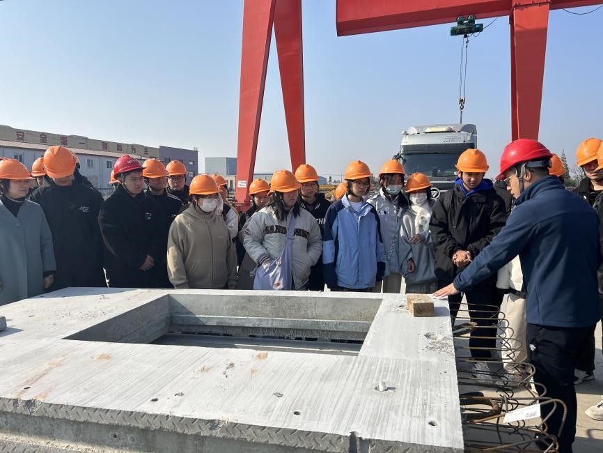 南通现代建筑产业发展有限公司总工程师席亚杰对建筑工程学院家长分校一行人的到来表示热烈的欢迎,并介绍了该公司在装配式建筑领域的广阔发展前景。随后,在席亚杰的带领下,师生代表和家长代表共同参观了企业的生产厂房,实地考察了国内一流的预制装配式建筑中的梁、板、墙的生产设备,近距离实地了解了建筑行业的快速变革,触摸了行业最前沿的发展。家长们与企业负责人和学院老师们对建筑企业未来的发展战略、人才培养计划、毕业生就业待遇等问题,进行了交流。