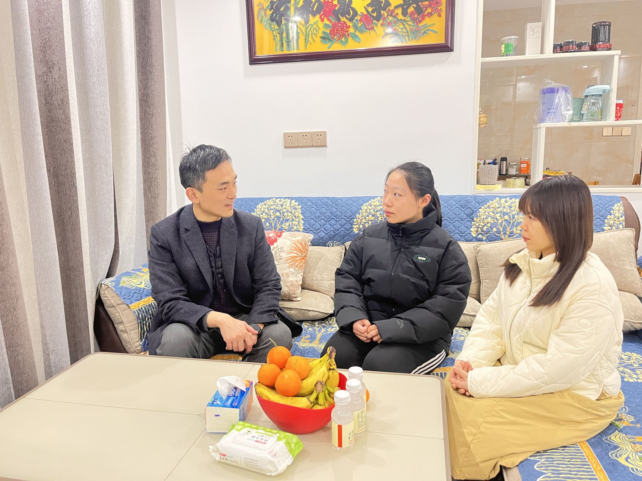 为持续构建家校协同育人的良好局面,深入了解学生家庭状况,用心、用情、用力服务好学生成长成才,学院走访团队来到盐城市蒋焮羽、陶亮同学家中开展2024年寒假家访活动。高飞代表学院为学生家庭送上了关怀与问候,介绍了国家“奖、贷、助、勤、补、免”六位一体资助政策,与家长交流了学生在校的学习、生活情况,并就家长和学生较关心的专业发展前景、专转本准备、就业方向等问题进行了深入的交流。他叮嘱学生要夯实专业基础知识,增强实践能力,认真做好学业规划,明确奋斗目标,希望家长积极参与到学生培养教育中,为学生成长保驾护航。