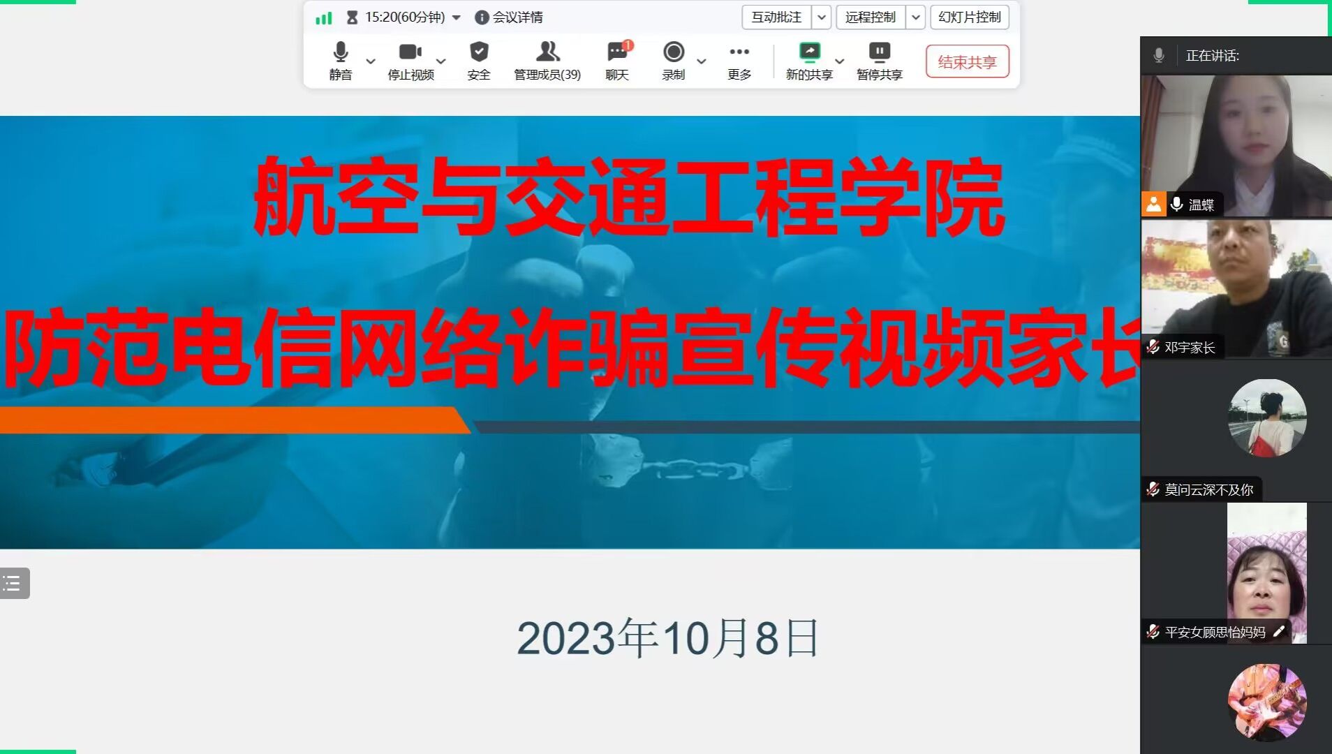 为进一步凝聚校园反诈共识,提升学校师生、家长辨别诈骗的能力,家长学校开展防范电信网络诈骗宣传活动。各分校辅导员、班主任通过防范电信网络诈骗视频家长会、主题班会、反诈宣传进学生社区等方式进一步帮助家长、学生认清电信网络诈骗的真面目;每位教职工积极参与,构筑起坚不可摧的网络安全防线,保护好自己和同学的财产安全,维护好校园安全稳定。