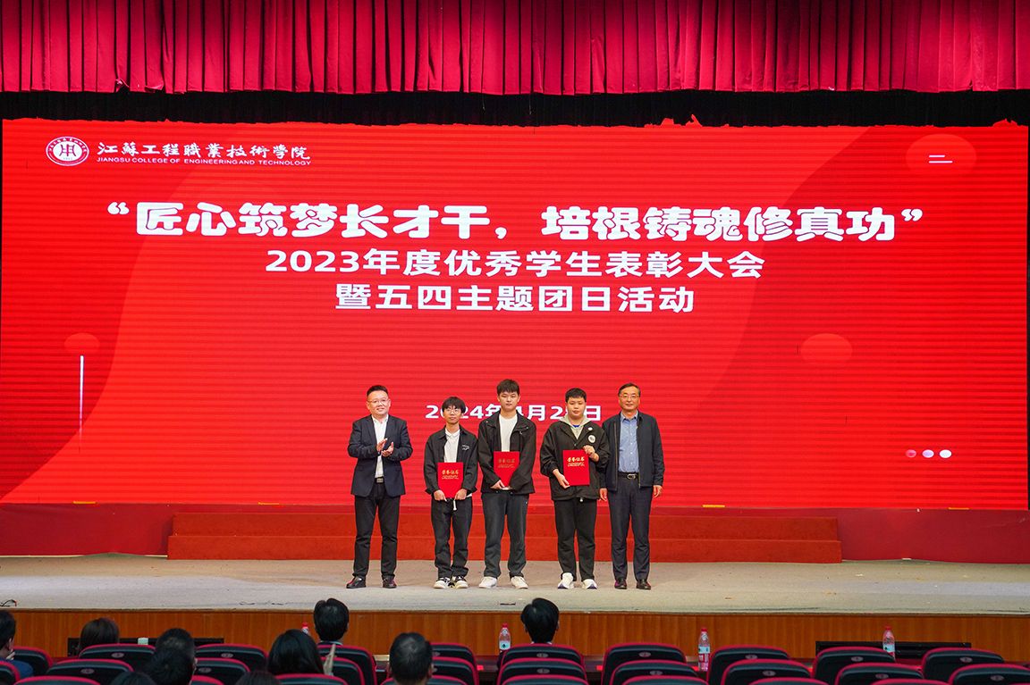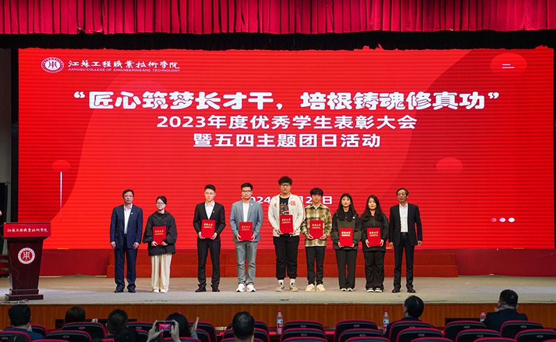 4月28日下午,“匠心筑梦长才干,培根铸魂修真功”2023年度优秀大学生表彰大会暨五四主题团日活动在我校崇川校区大礼堂举行。校党委书记秦志林,党委副书记、院长张忠,党委副书记邓海龙,党委委员、副院长丛彬彬,党委委员、副院长孙兵,党委委员、纪委书记顾剑锋,党委委员、副院长郭江峰,党委委员、宣传部长王希颖出席了大会。学校相关党政职能部门领导,各二级学院(部)党政领导、指导教师代表、辅导员、班主任以及700余名学生代表相聚一堂,共同见证和庆祝属于工院优秀学子的荣耀时刻。本次大会由党委学工部、团委联合主办,并进行了网络直播,15000多名师生、学生家长在线观看了现场实况。