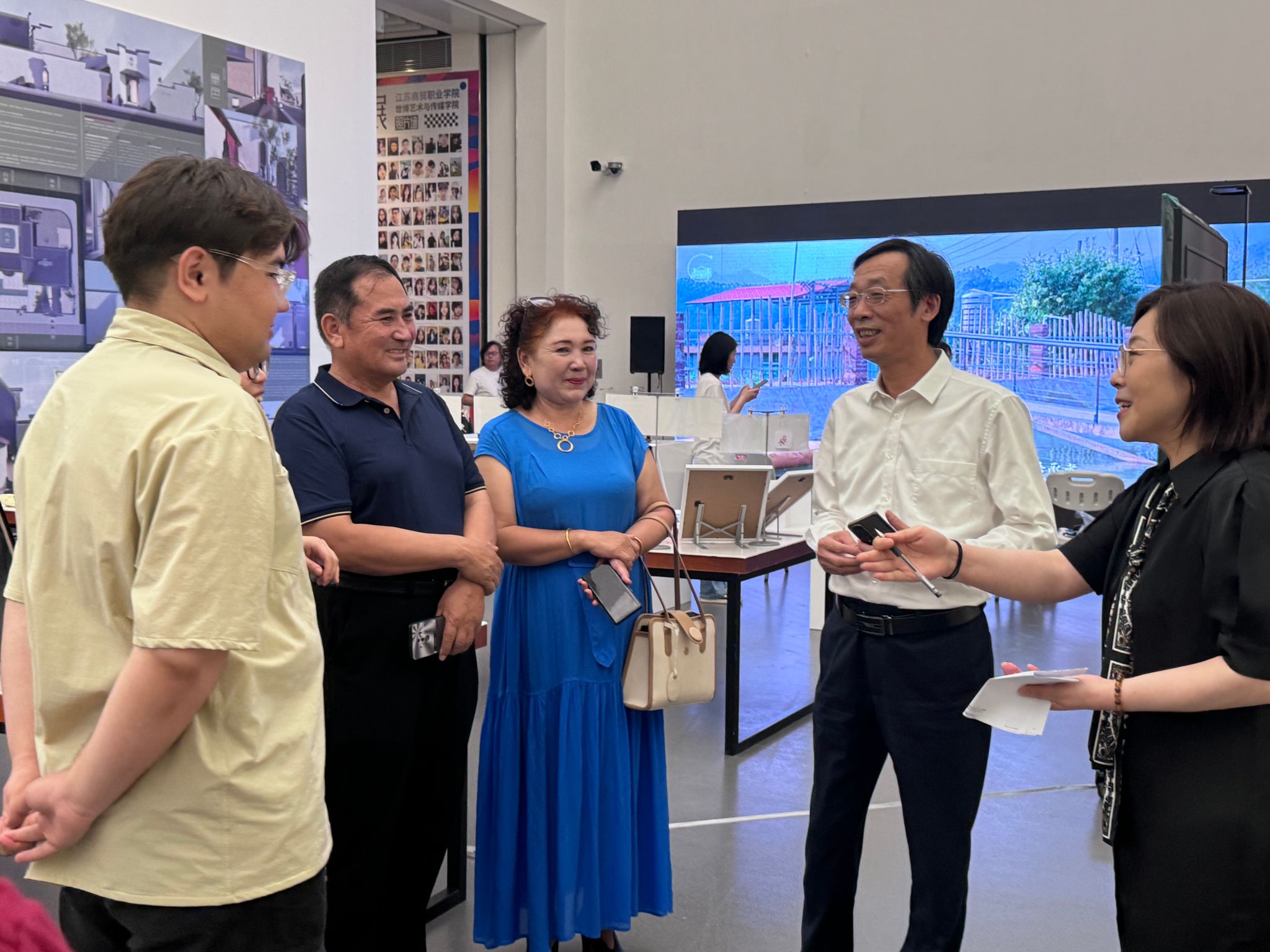 在观展过程中,我校家长学校校长秦志林对艾孜麦提·图尔贡的父母不远千里来到学校表示欢迎和感谢,并亲切交流。他强调,家长在孩子的成长过程中扮演着至关重要的角色,家校共育是培养优秀人才的重要途径。他希望家长们能够继续支持学校的工作,共同为孩子的未来发展创造更好的条件。同时,家长学校艺术设计学院分校校长彭曼也表达了对孩子们就业的关切。她指出,艺术设计专业是一个充满创意和挑战的领域,学生们在掌握专业技能的同时,还需要具备良好的创新能力和团队协作精神。她希望学校和家长们能够加强沟通与合作,共同关注孩子们的就业问题,为他们提供更多的实践机会和就业指导。