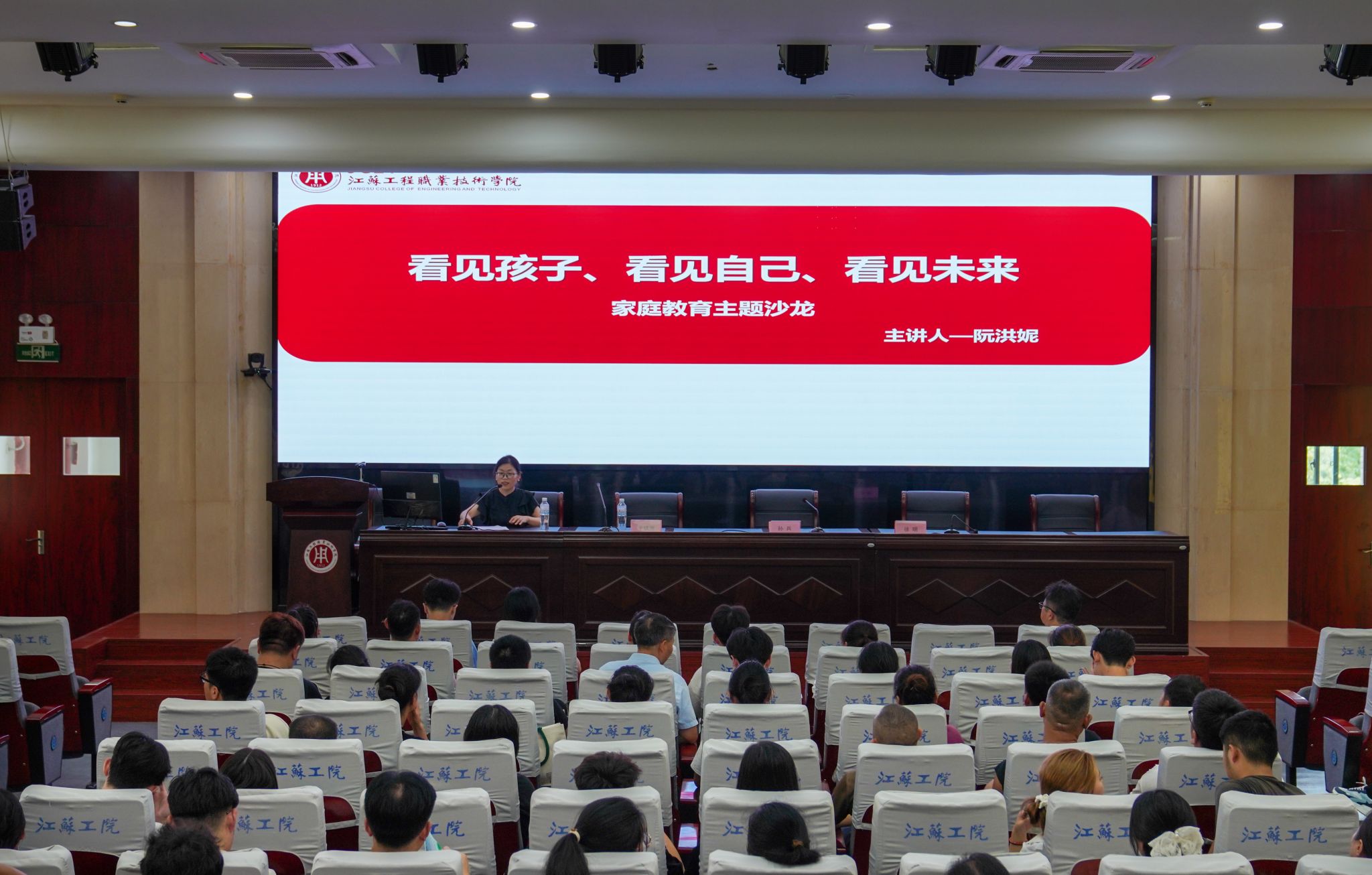 辅导员代表杨帆和陶茜茜从学生工作实践出发,与家长、新生代表们分享了“大学生活早知道”,帮助新生们更快更好地适应大学校园生活,也让家长们更全面地了解孩子们的校园生活学习安排。胡伟鹏和阮洪妮以《看见孩子、看见自己、看见未来》为题开展了家庭教育主题沙龙,向家长们分享家庭教育的重要性,强调要看到孩子内心真正的内在需求,只有不断自我成长才能更好地支持孩子的成长。