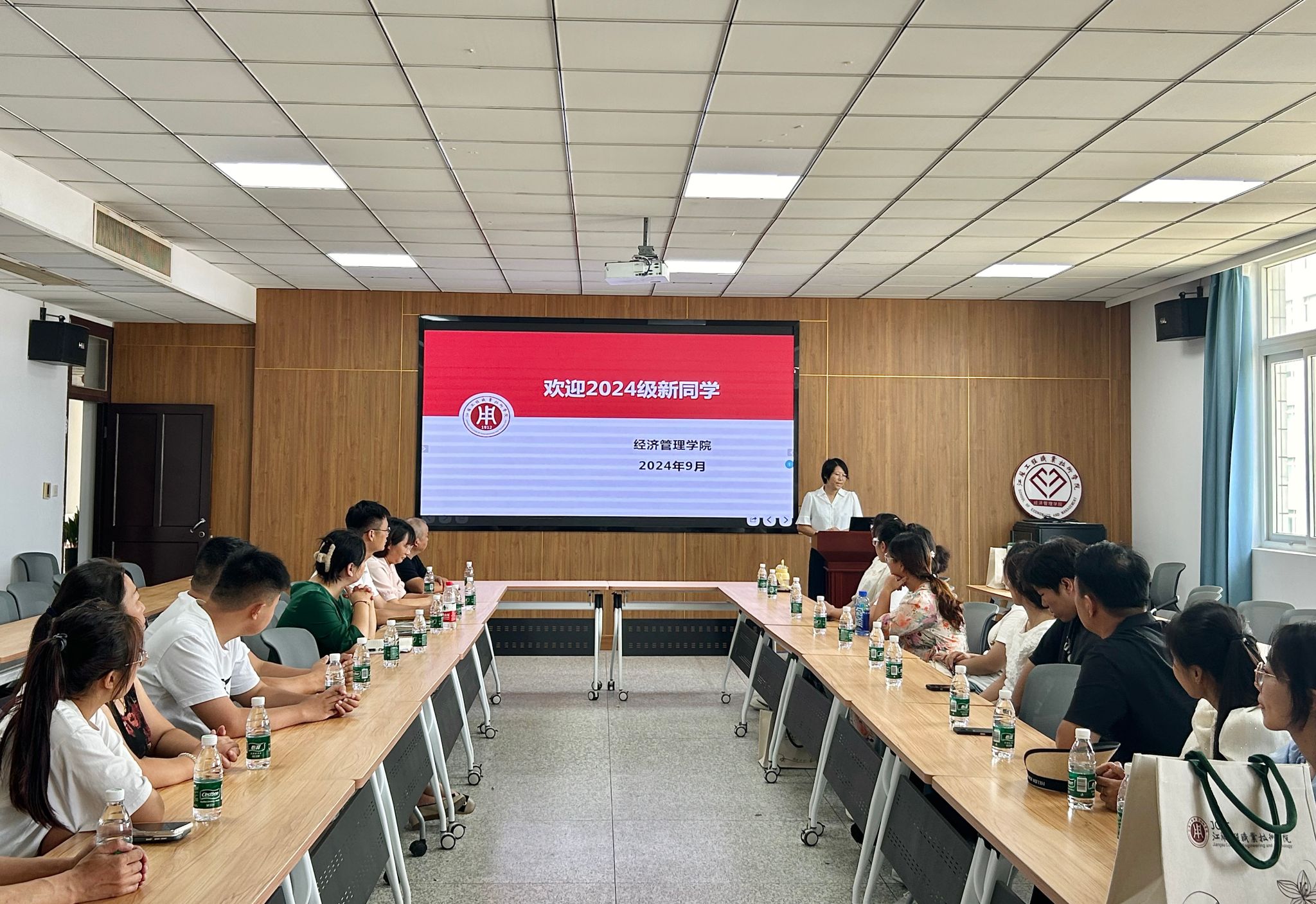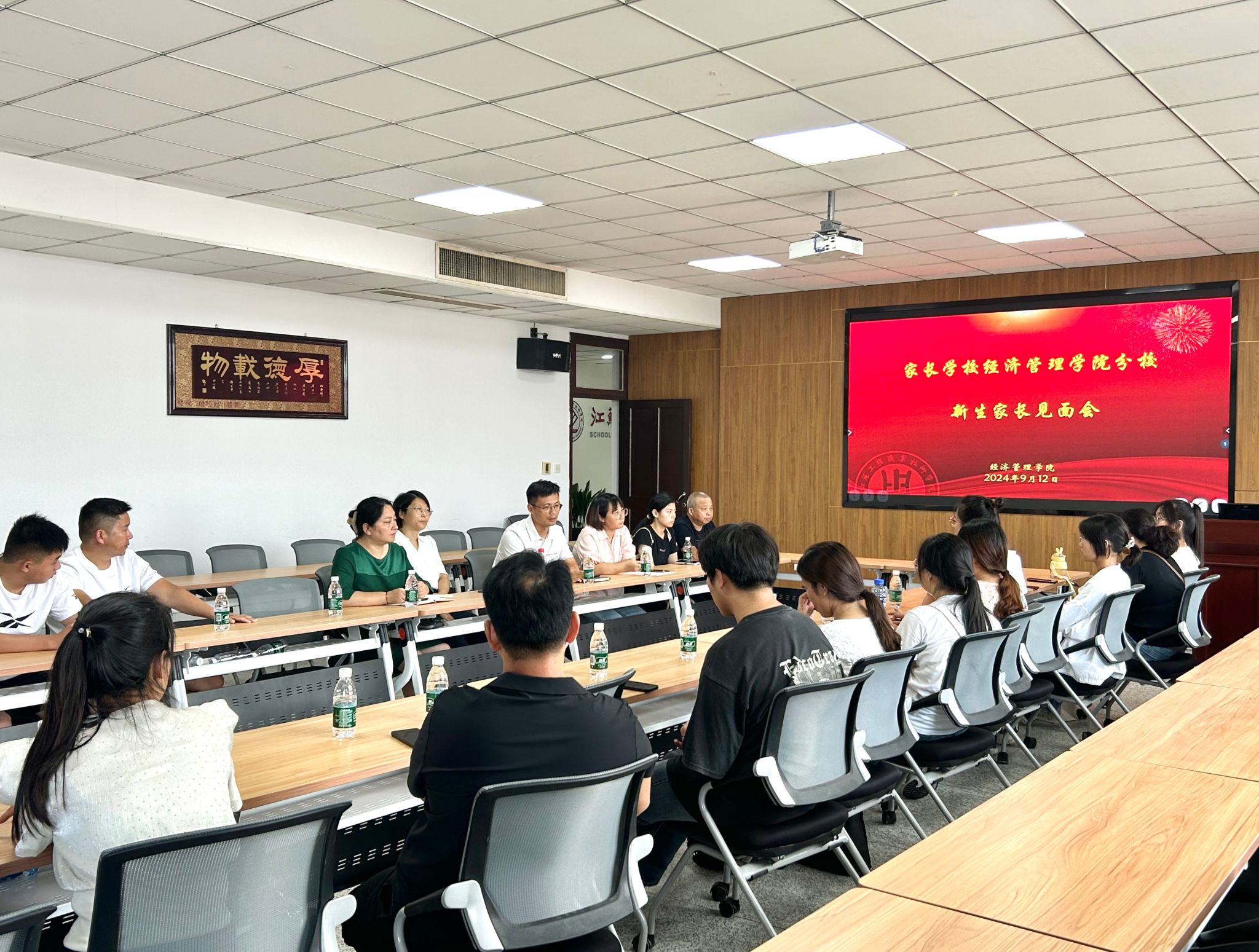 9月12日下午,经济管理学院2024级新生家长见面会在致知楼604举行。学院党总支副书记、家长学校经济管理学院院长范晔,党总支副书记王谦,副院长刘晓岚,教师代表姚云以及各专业共计26位新生代表、新生家长参加了会议。会议由王谦主持。