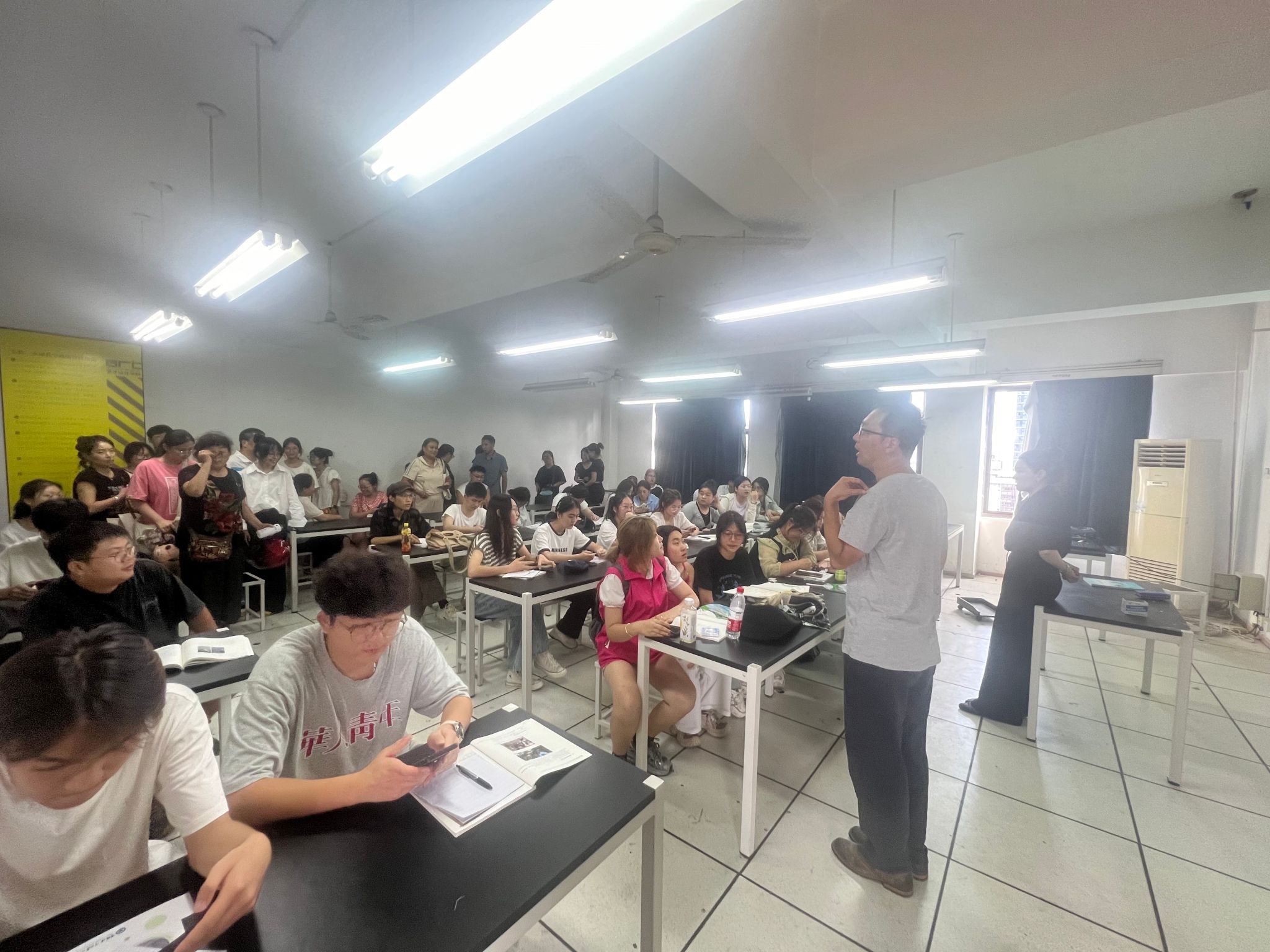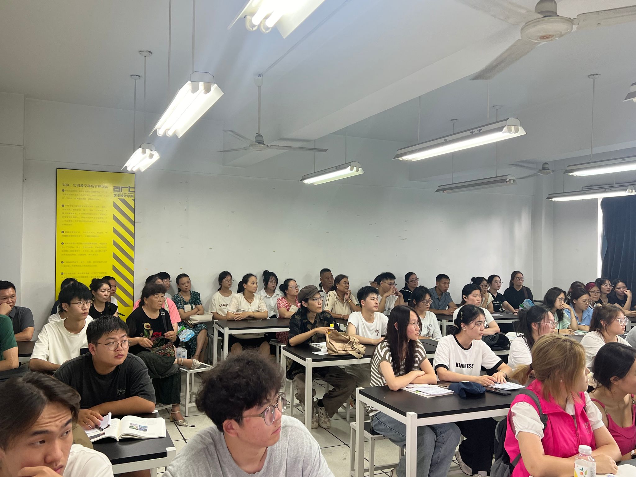 为增进家长对大学生学习环境和教育过程的了解,9月12日,家长学校艺术设计学院分校邀请十余名新生家长走进课堂现场,开展“家长听课日”活动。艺术设计学院党总支副书记赵喜恒、辅导员胡伟鹏参加了此次活动。