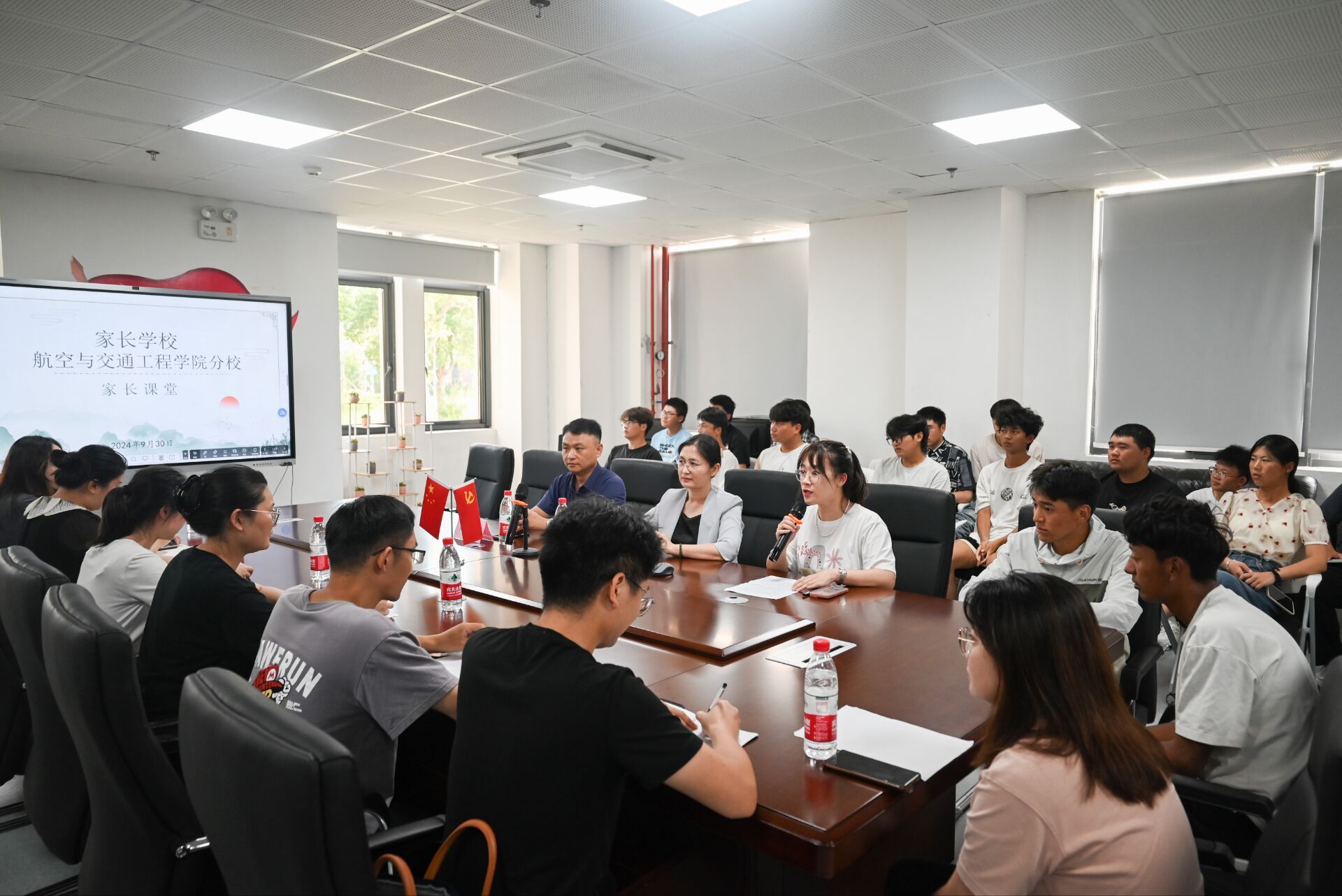 为构建家校深度合作的桥梁,共同致力于打造家校协同、共促成长的和谐环境,为学生的全面发展提供坚实的支持与保障。9月30日,家长学校航空与交通工程学院分校在海门一站式学生社区举办了家长课堂活动。航空与交通工程学院党总支副书记陈益飞,家长代表泰州市医药高新区(高港区)教育局主任卜琴、辅导员老师以及学生代表60余人参加活动。活动由陶茜茜主持。