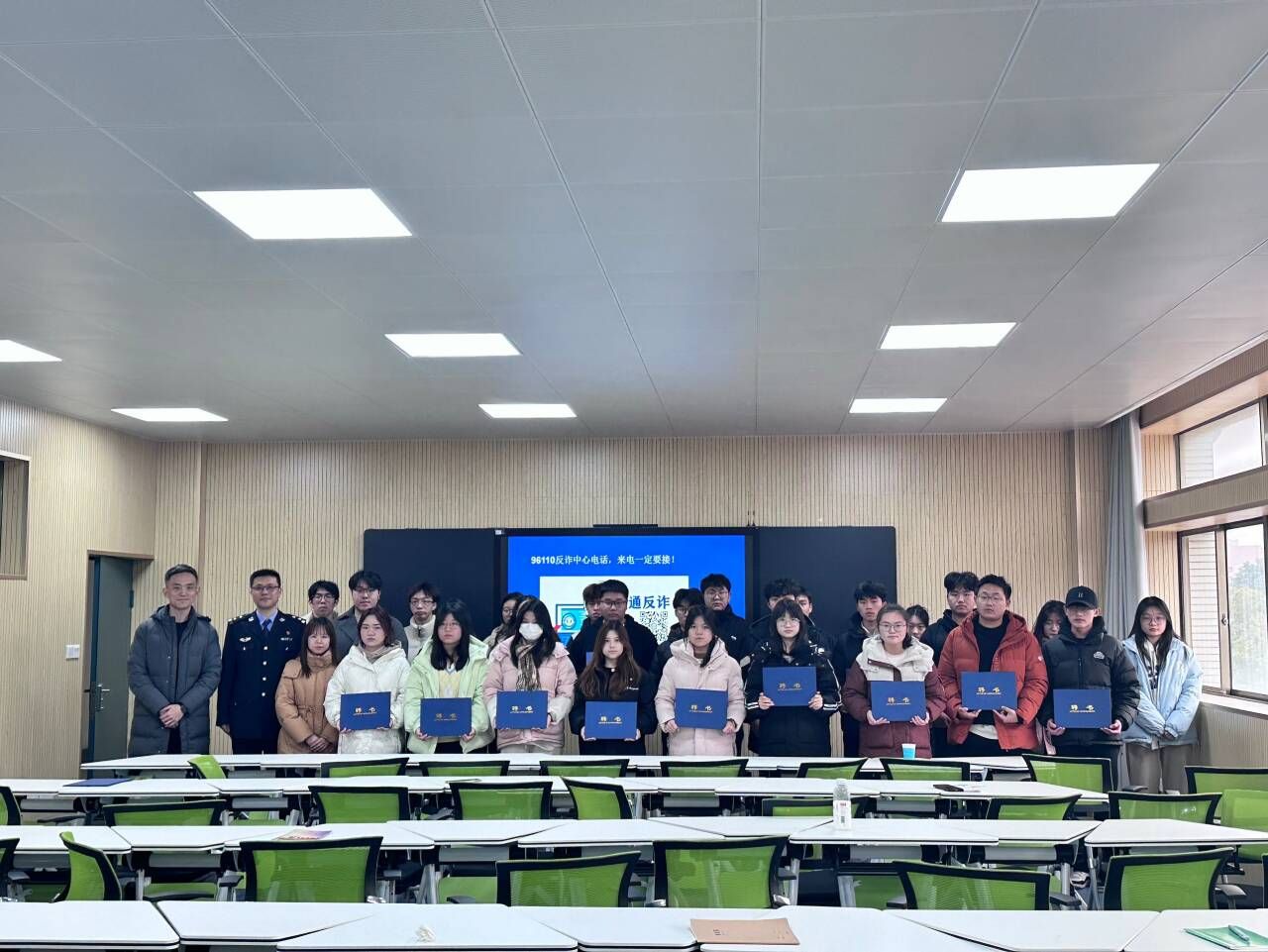 苏渝淇针对当代大学生的特点和可能遇到的诈骗形式进行了细致的研究和分析,并通过收集案例、查阅资料等方式,精心准备了授课内容。在课堂过程中,苏警官通过列举鲜活的案例,剖析诈骗分子的常用手段和伎俩,使学生们能够直观、深入地了解电信诈骗的危害。课后,苏警官为各班反诈宣传员颁发了聘书,帮助学院一同构建起反诈教育工作网络。