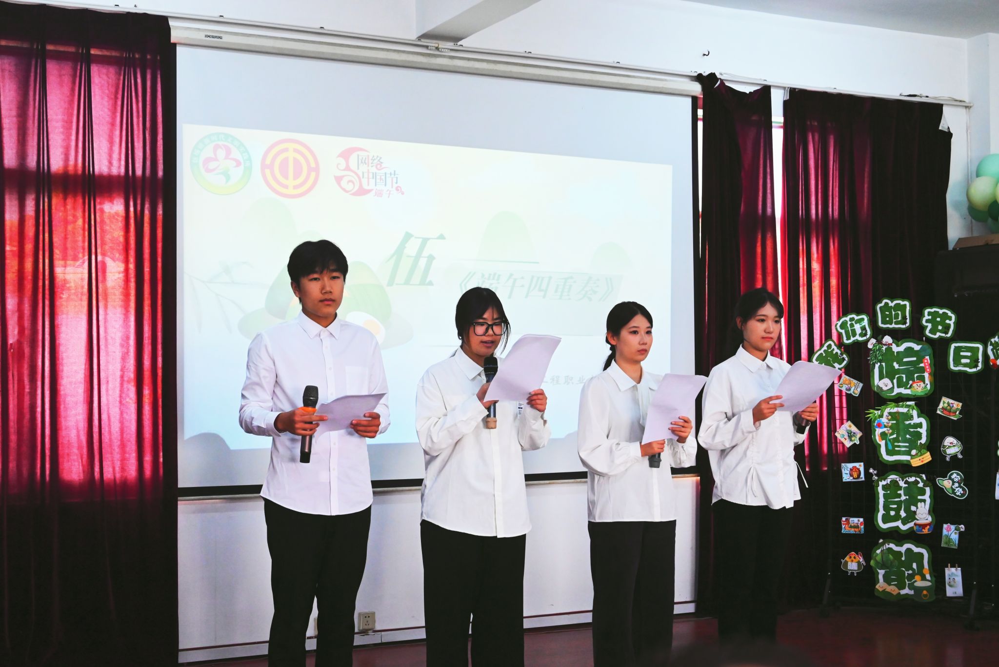 活动在铿锵有力的非遗锣鼓舞中拉开序幕,传承人手持彩绸鼓槌,鼓面震动的声浪与村民的喝彩声交织,瞬间点燃现场氛围。随后,学生们带来朗诵《楚辞里的端午》,学生们以“路漫漫其修远兮”的铿锵语调,配合伴奏将屈原的爱国情怀娓娓道来。
