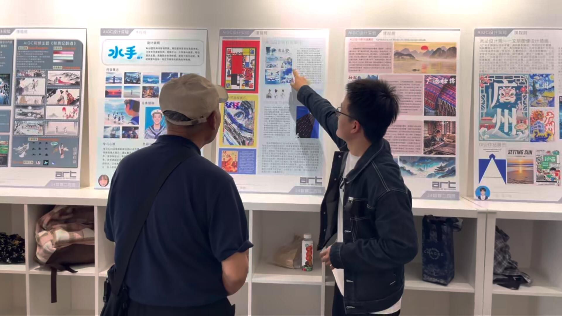 系列活动分为进入课堂实际听课与参观课程成果展览两个部分。课堂听课部分组织家长参与了视觉传达团队岑静老师的《AIGC设计实验》课堂,家长与学生共同学习了大语言模型的特点、大语言模型的使用方法与技巧等知识。课程展参观部分组织家长对24数媒二四班《AIGC设计实验》课程成果展进行参观,班主任宋卓进行了展览讲解,向家长阐述了人工智能的发展前景,并说明该课程能够有效增强学生生产力,显著提升学生的就业竞争力。此外,宋卓老师还带领家长们参观了校园,对学校的各个学习、生活场所进行了介绍,全方位地展示了学校为学生提供的学习环境与生活配套。
