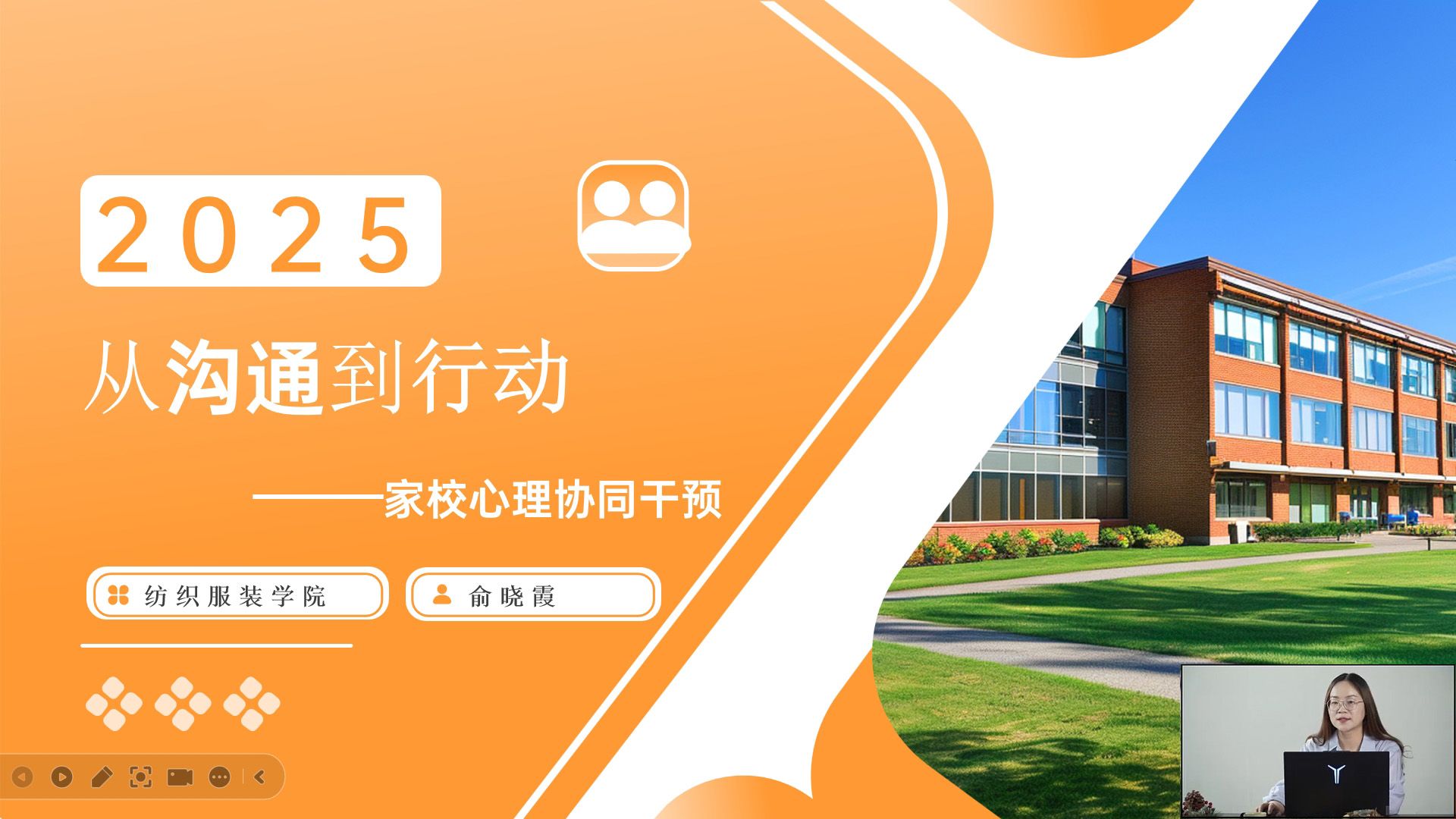 纺织服装学院辅导员俞晓霞以《从沟通到行动——家校心理协同干预》开启首讲。对“家长回避沟通”“家校责任推诿”等典型困境,她提出创新沟通策略,构建标准化沟通体系。