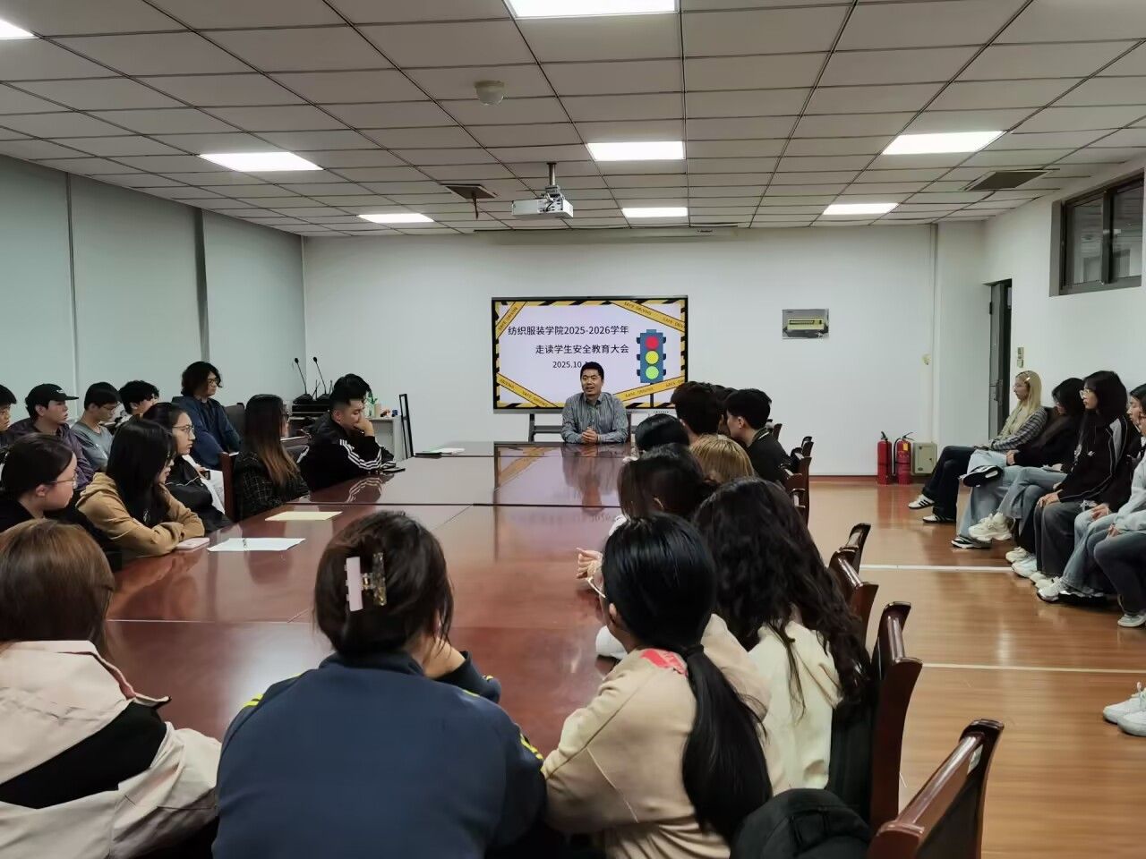 为进一步加强对走读学生的教育管理,强化安全意识,提高风险防范能力,10月14日中午,纺织服装学院在强毅楼604会议室召开了24、25级走读学生安全教育大会。学院党总支副书记刘桂阳、辅导员陆敏以及全体走读学生及家长参加了会议。会议由刘桂阳主持。