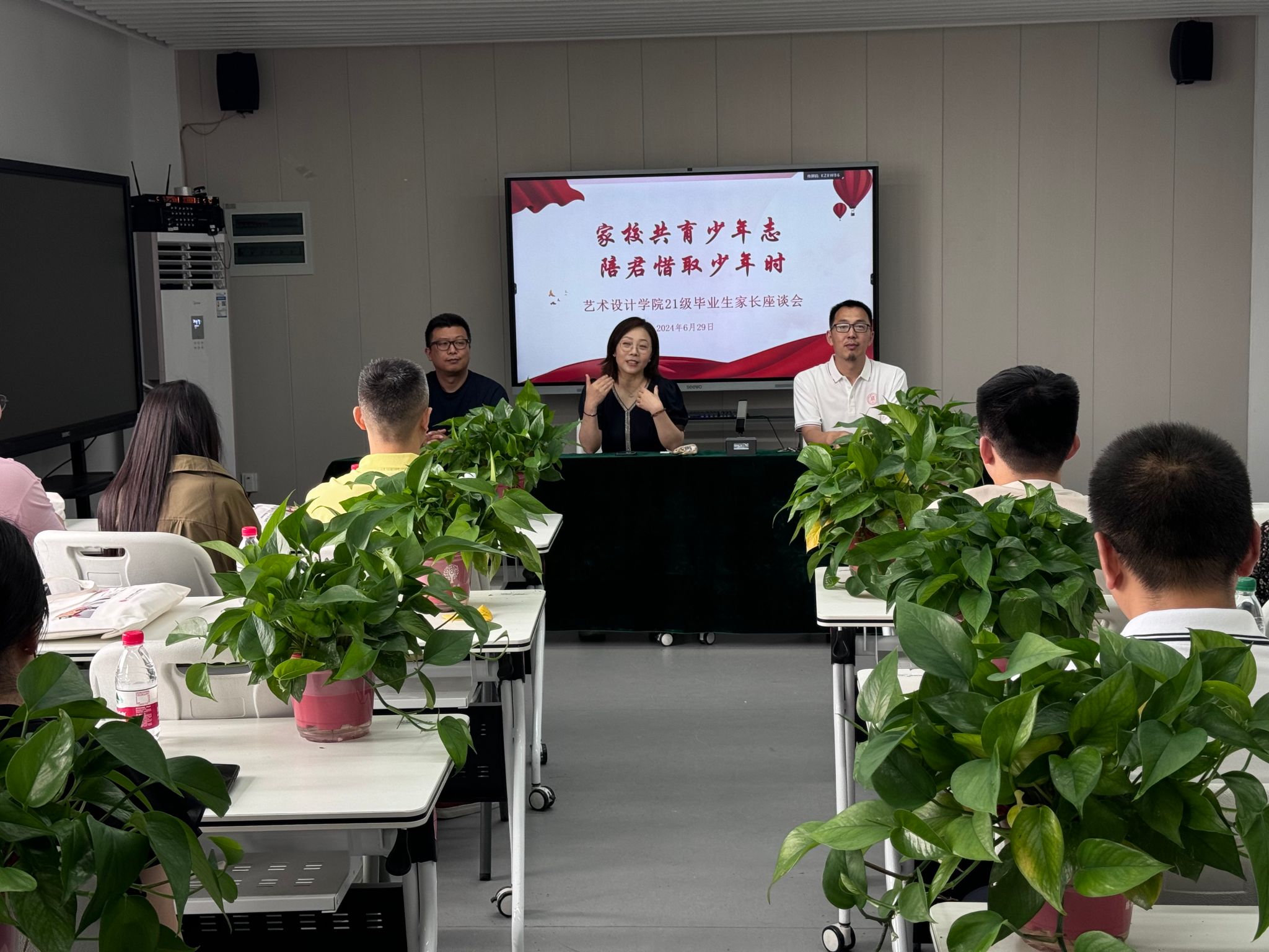 6月29日,艺术设计学院举办21级毕业生家长座谈会,党总支书记彭曼、副院长汪智强、党总支副书记赵喜恒及十余名毕业生及家长共同参与,开展21级毕业生家长座谈会,汇聚家长、学院及毕业生三方之力,共同探讨学生成长之路,展望毕业生们的未来前景。